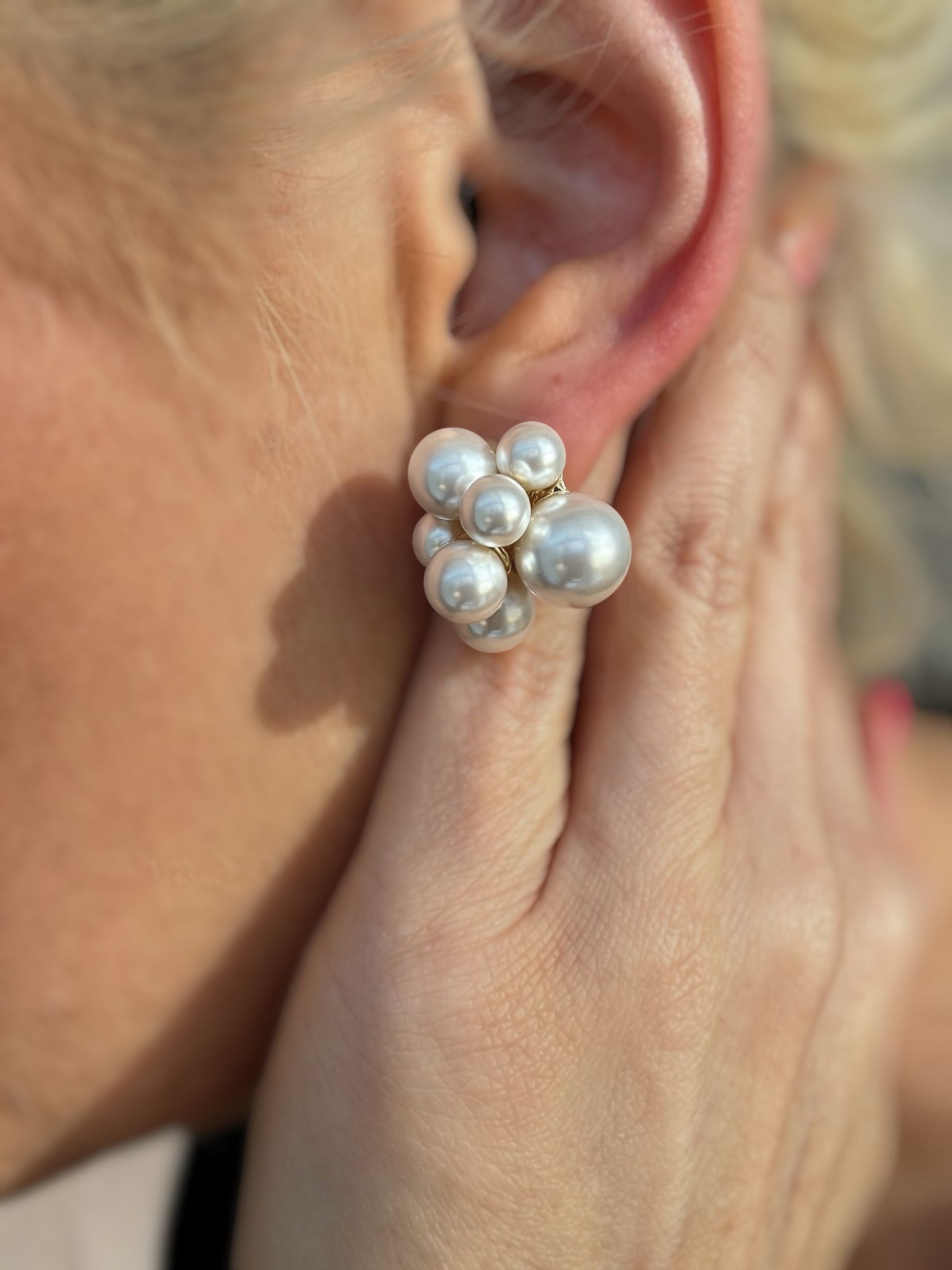 Embrace a touch of vintage charm with these unique Luminous Ivory Cluster Pearl Post Earrings. Perfect for adding an artistic and sophisticated flair to any ensemble, these earrings are designed to make a subtle yet striking statement. Their distinctive design offers a modern twist on a classic traditional motif, ideal for those who appreciate understated luxury and individual style.